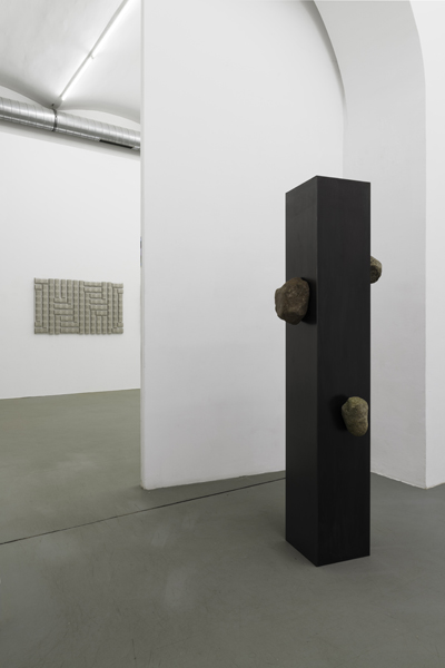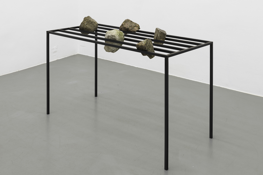 by knowing exactly what prefabricated steel grids we encounter everywhere nowadays in the construction industry (in the past there was the profession of the iron bender, who bent iron mesh for the concrete mold) – which today, of course, is an entire industry - which, based on computer plans, delivers the actual ready-made frameworks directly to the construction site … and we see these forms everywhere in – in front of – under – over building shells – and – when these true forms disappear under the concrete design – the second comes – namely the garden center culture. In order to mend our long perverted relationship to “mother nature”… By placing with magnets pierced, washed – stones found in nature (which one) – on exactly the polished positions, where our eyes need them for a moment when phoning and manipulating…