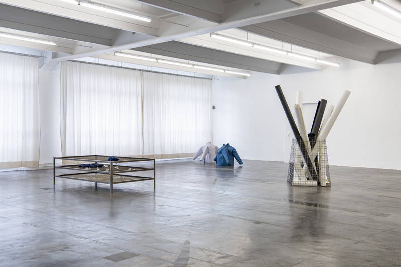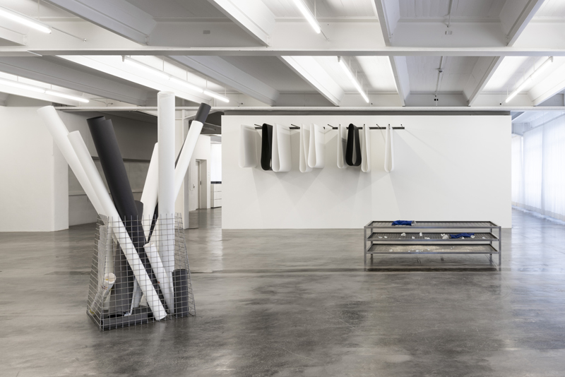 With the knotter he patented in 1860, the wire cloth weaver Christian Wandel developed an apparatus for paper production that protected screens from the wear caused by coarse pulp impurities, ensuring consistent paper thickness for the first time. The artist Sunah Choi has developed sculptures, works on paper and installations especially for the Kunstverein Reutlingen that are inspired by the local history of the Wandelhallen and the imagined manufacturing processes of a production chain. Large steel sculptures made of welded grid structures refer to changing rooms or lockers for staff, wall objects recall spools for drying paper reams, and installations of coarse mesh refer to screening machines. The exhibition “Knotenfänger” (knotter) not only traces the industrial history of the building, but also addresses contemporary work. Choi’s own work process is always characterized by logic and intuition: first, ideas and experiments accumulate alongside extremely precise research, followed by an absolute reduction to the essential, resulting in an austere yet highly poetic aesthetic. The juxtaposition of antithetical principles—such as the combination of the massive and the fragile, light and shadow, construction and deconstruction—forms a dialectical interplay of space and time borne by a fascinating lightness and yet tightly wound.