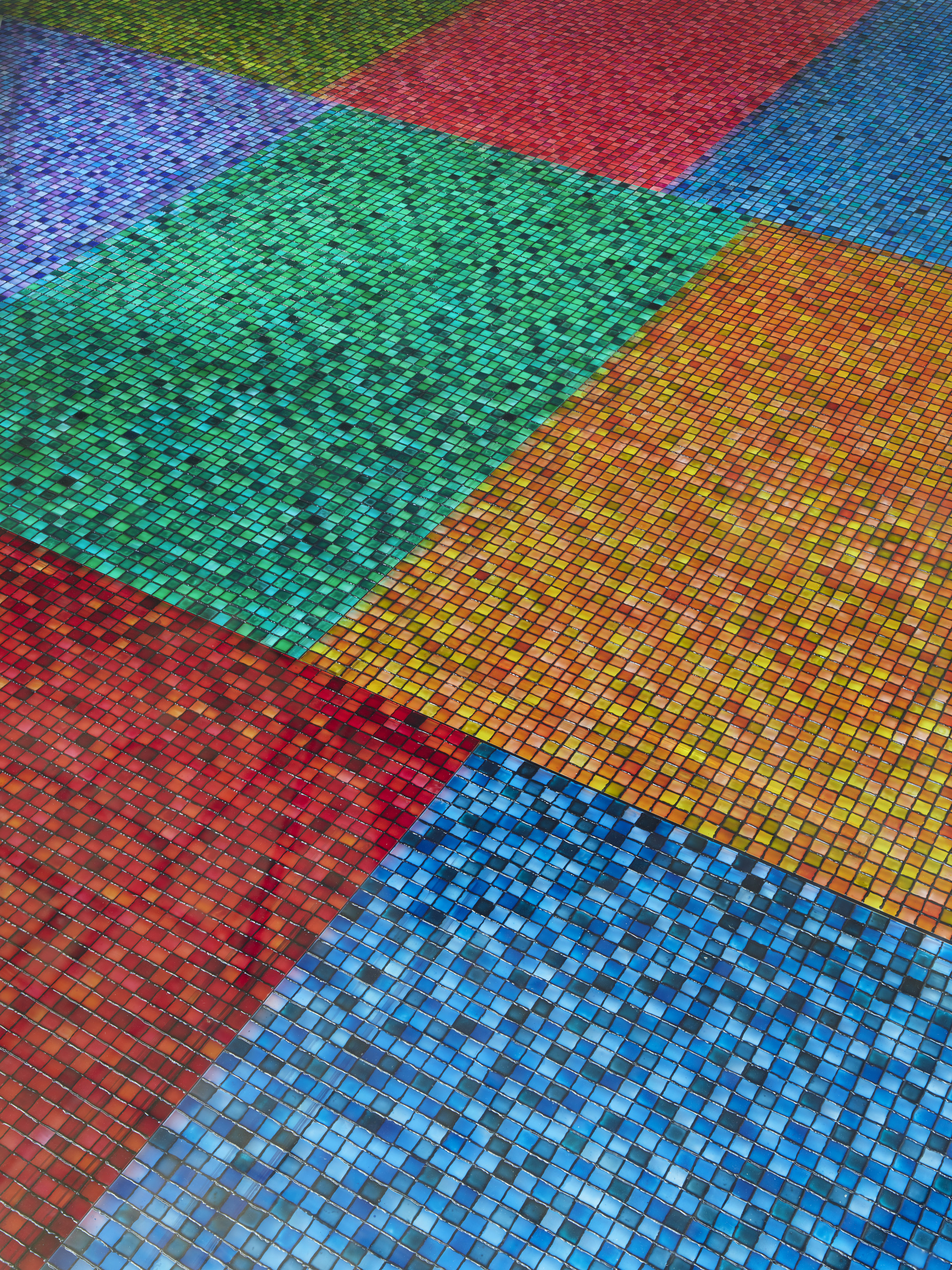 With her site-specific installation Sol, Sunah Choi transforms the KIF window display into a space of glass and light. Eight seamlessly arranged glass panels fit precisely into the surface behind the window, filling its floor plan. They are both a “floor” (French: sol) and a large-format image.