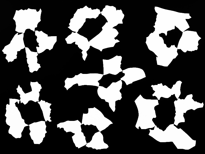 Different groupings of shapes of 25 administrative districts in Seoul.