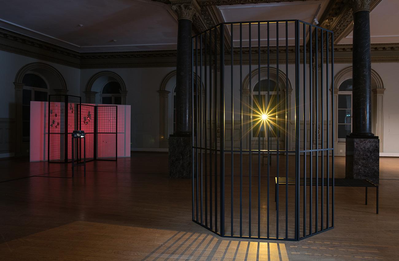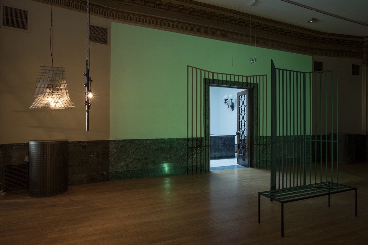 Kunsthall 3.14 situates in a historic building, which was formerly Norges Bank. The bank built by Norwegian architect Ole Peter Riis Høegh between 1840 and 1845 is characterized by classicism. The former business hall of the bank is now used as an exhibition hall. Although the hall has been rebuilt and modified several times over the years, the original basic structure, which corresponded to the purpose of the room, is still clearly visible. The artist developed sculptures, which refer to inner architecture in the hall, which formerly defined the entire space on a functional and symbolic level but no longer exists.