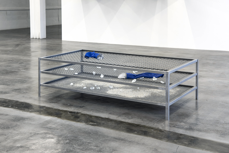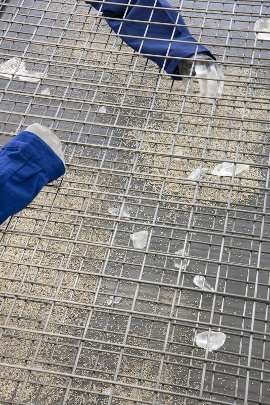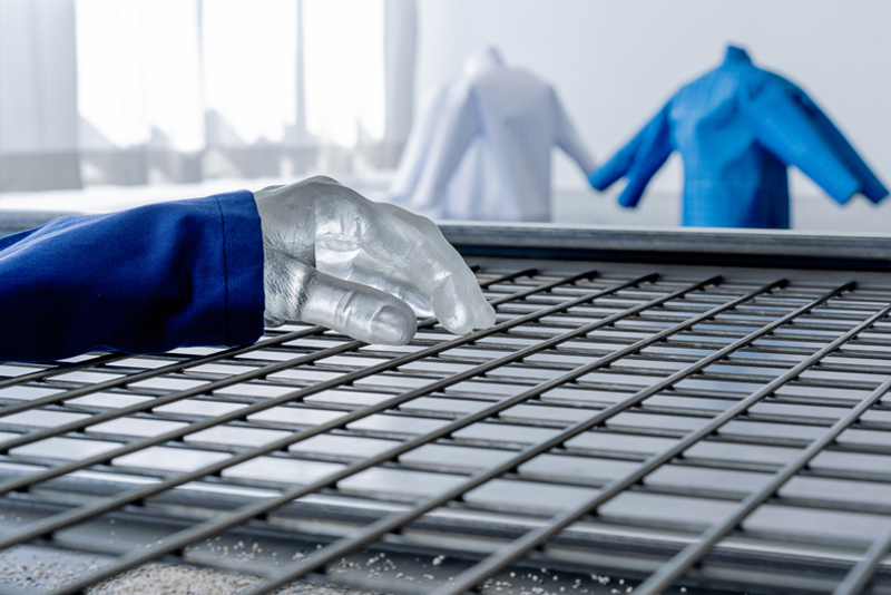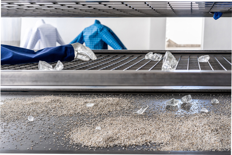 Steel, glass, synthetic resin, textile, quartz sand