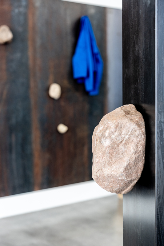 Steel, coble stones, wood, magnets, textile
