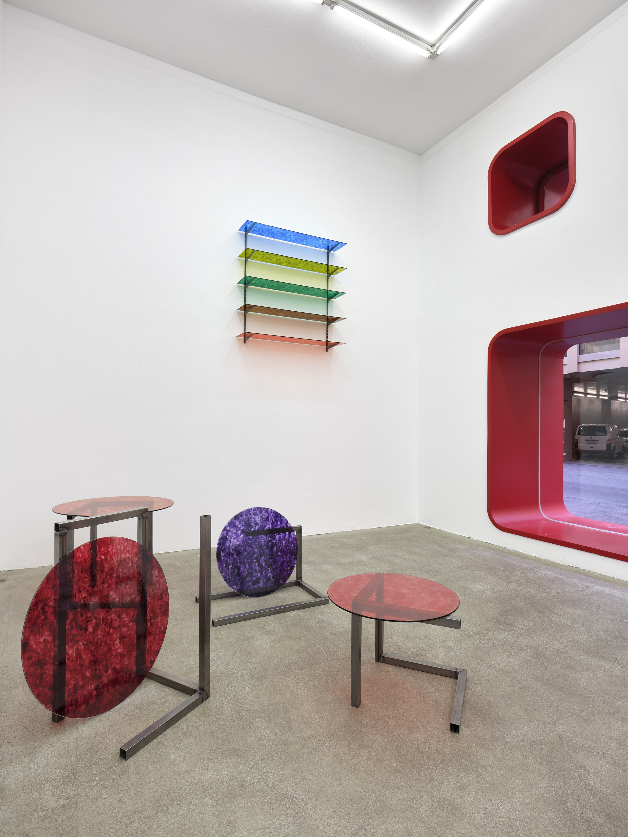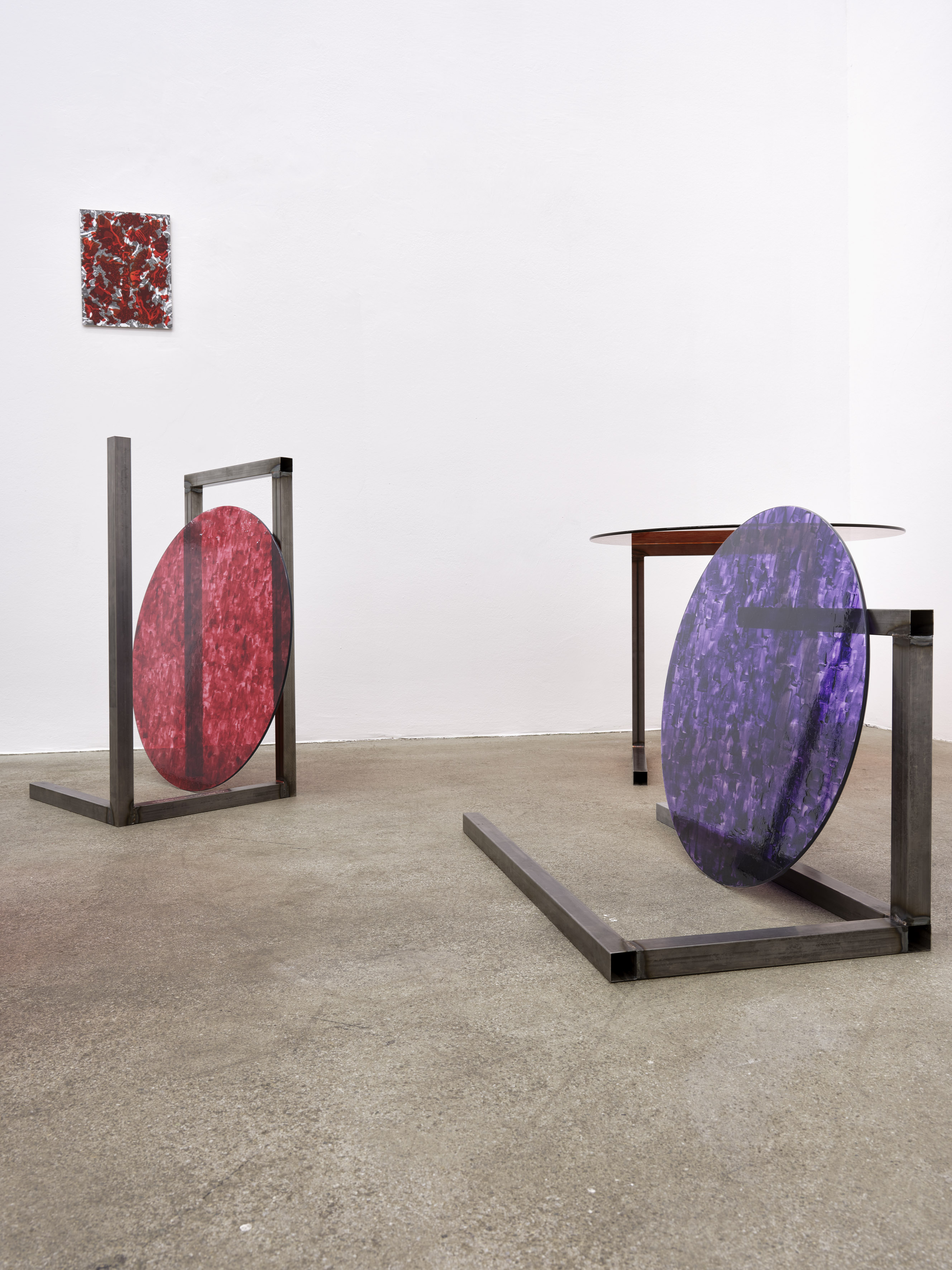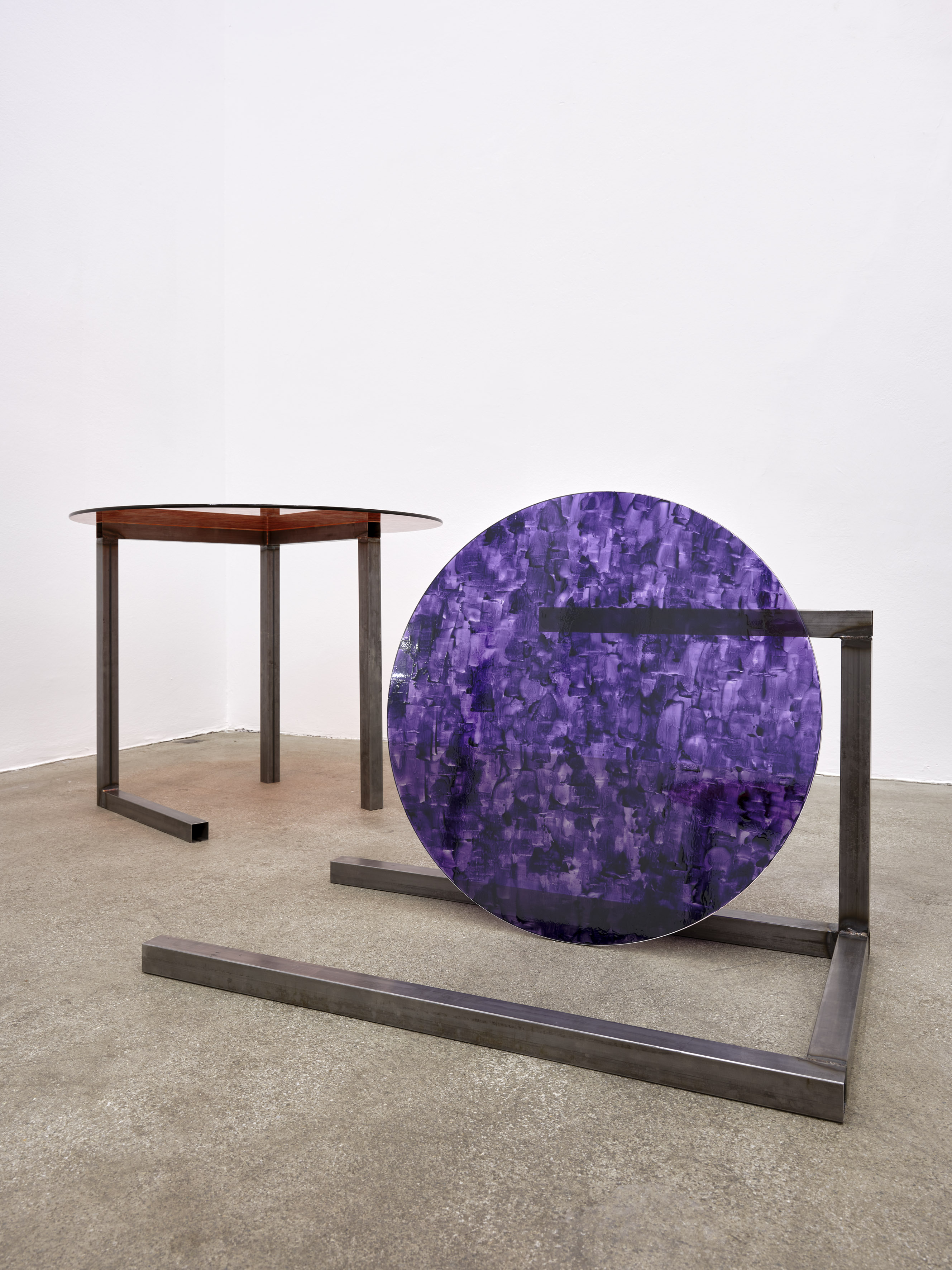 Steel, glass, varnish, 90 x 90 x 71 cm