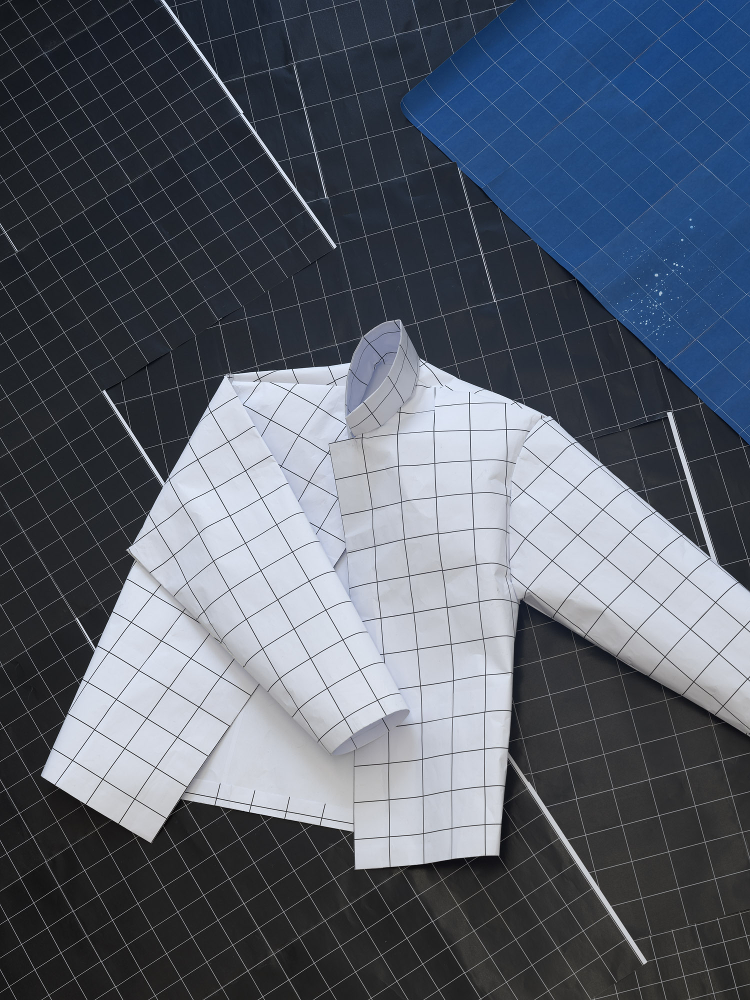 Laserjet-print on DIN A4 paper, Cyanotype on paper, glue