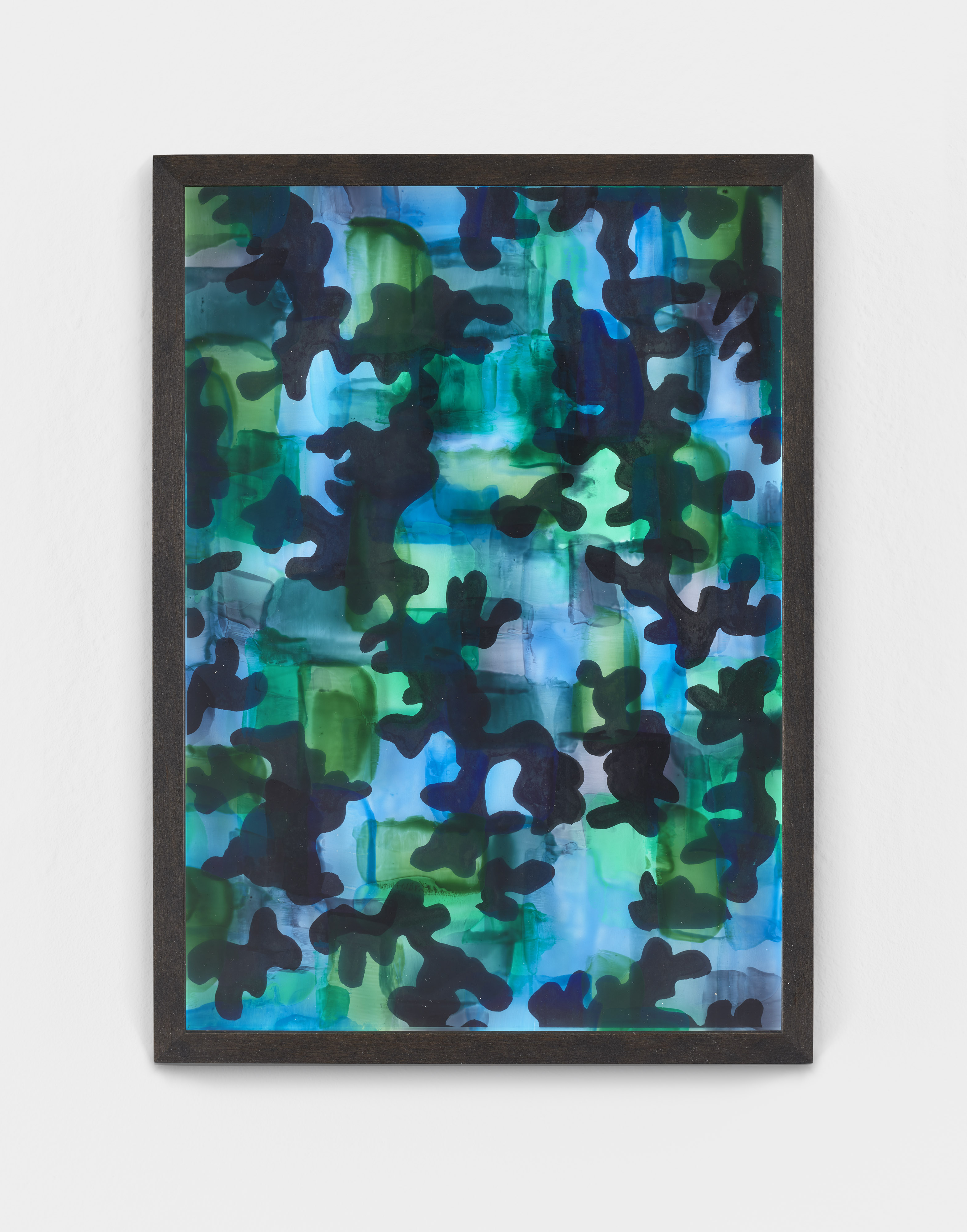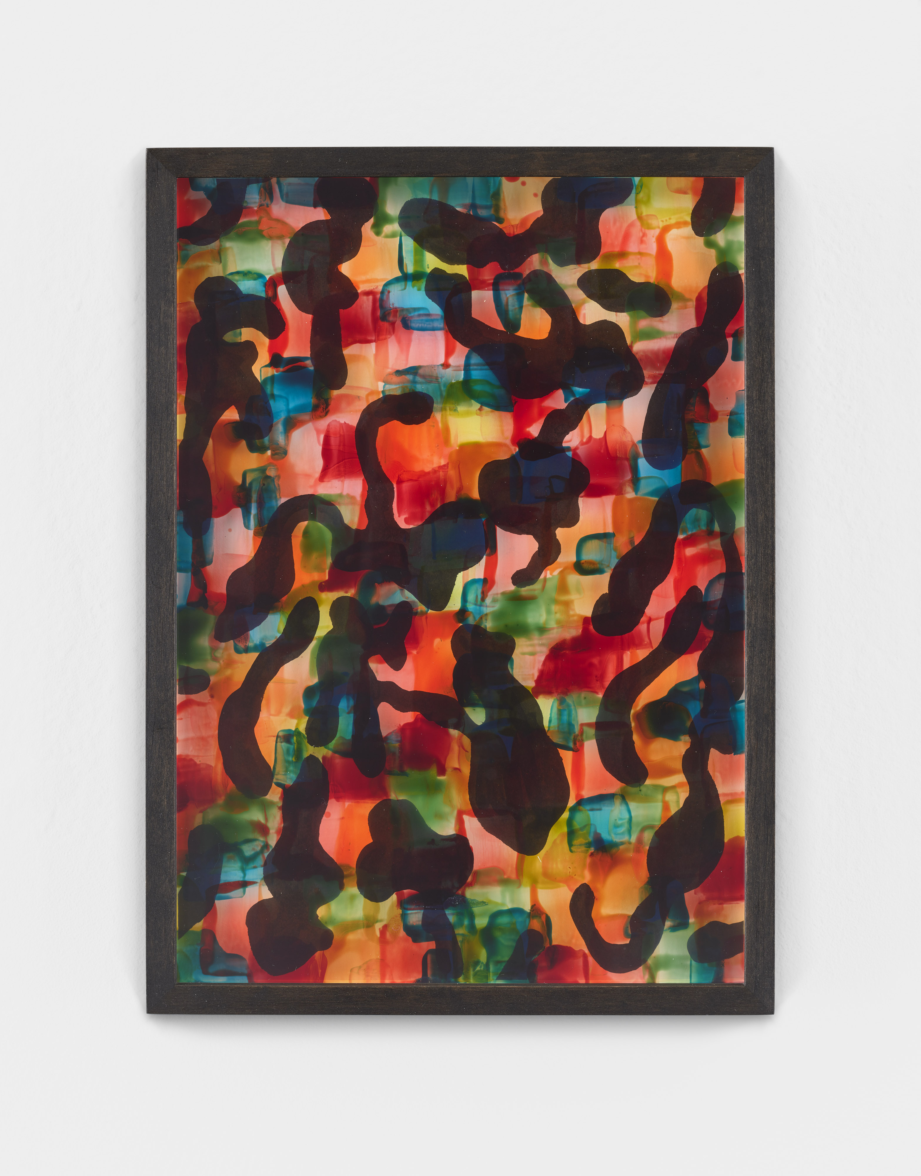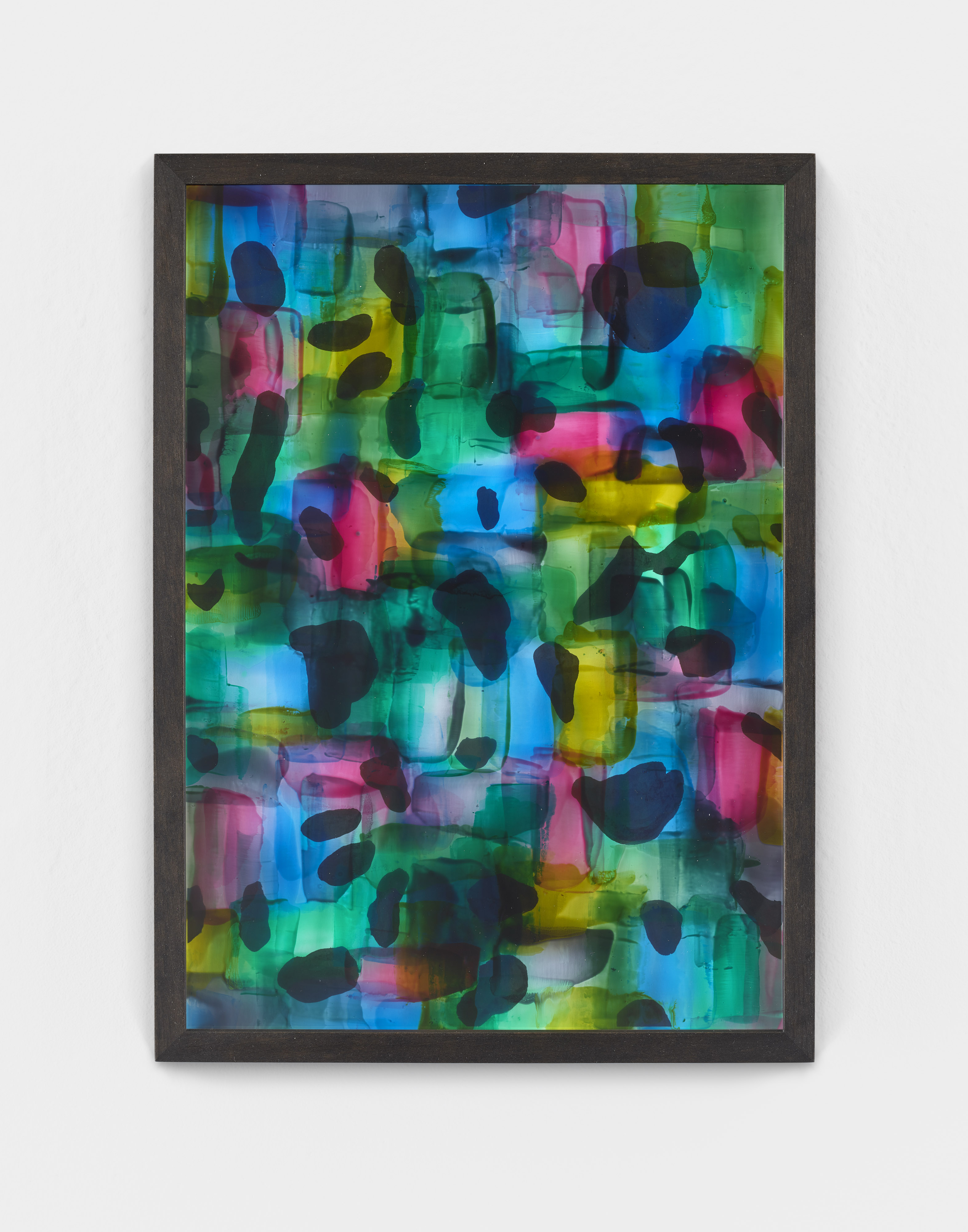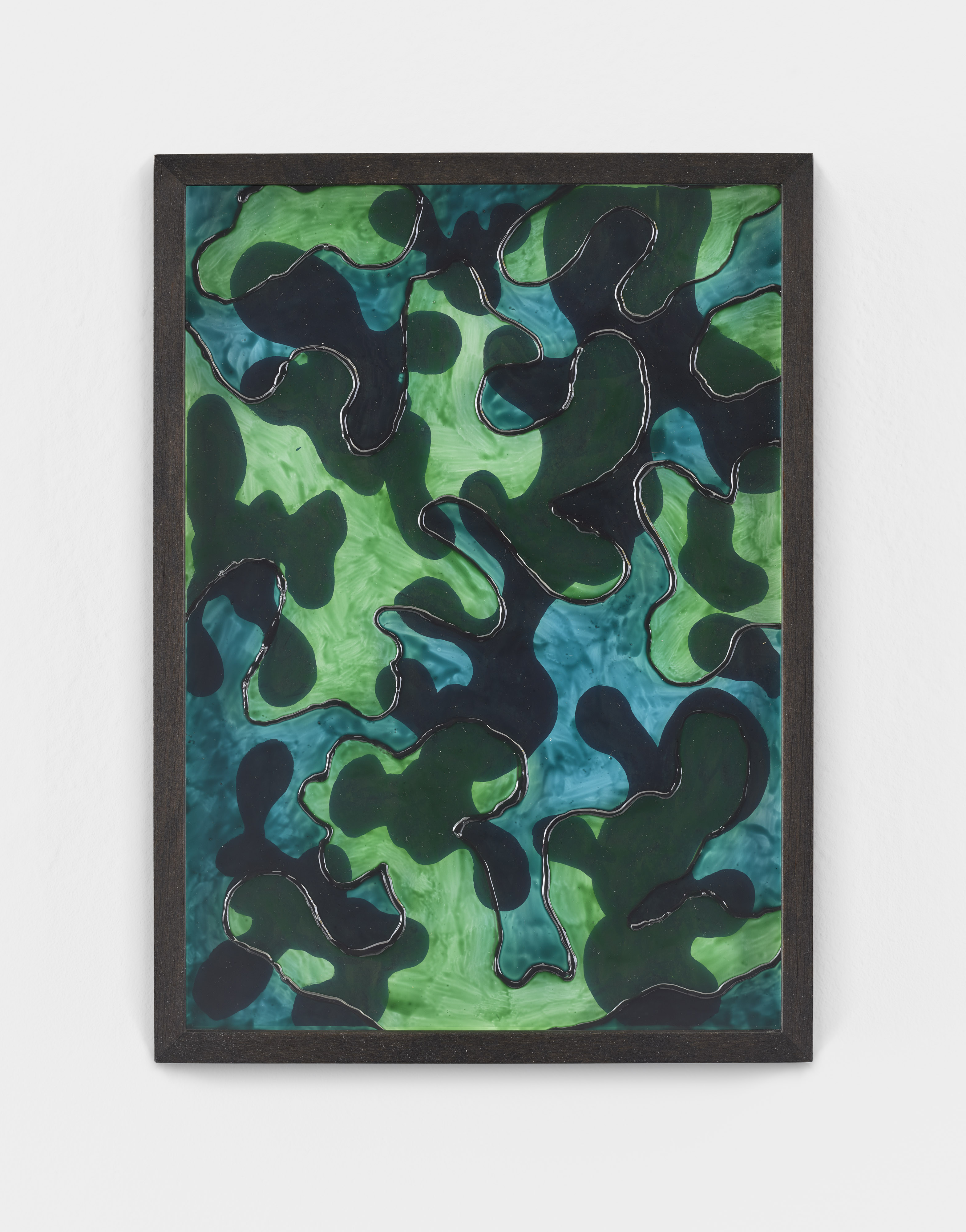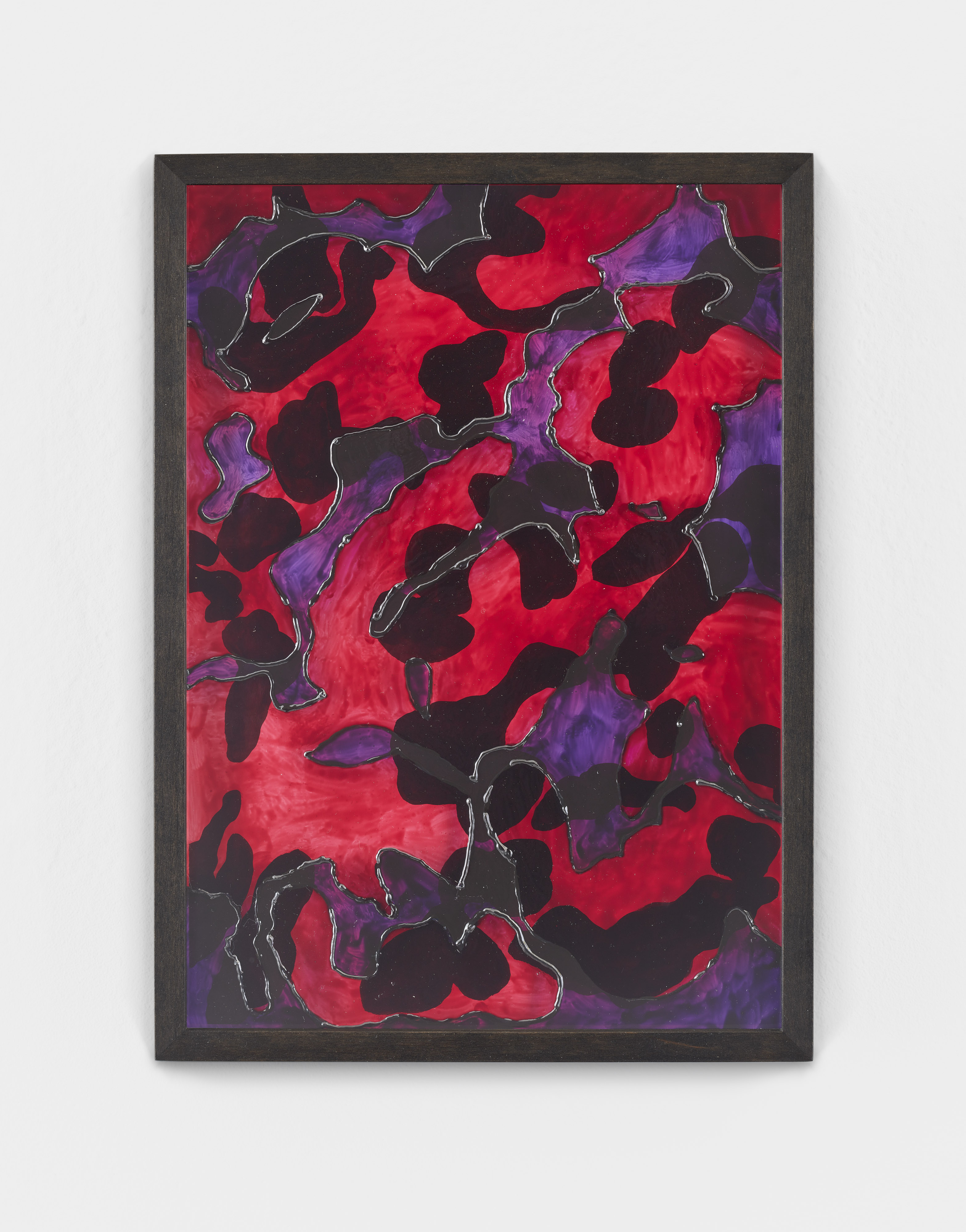 Painted glass plate, relief paste, ink drawing