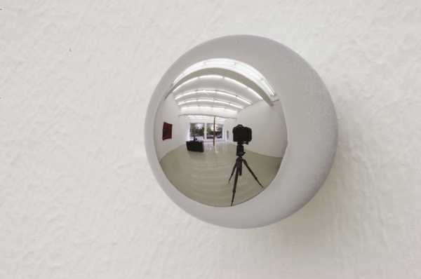 In its concave surface, a metal sphere on the wall mirrors the entire room in a slightly distorted form; this was a favorite device for visual experiments in the 1920s.