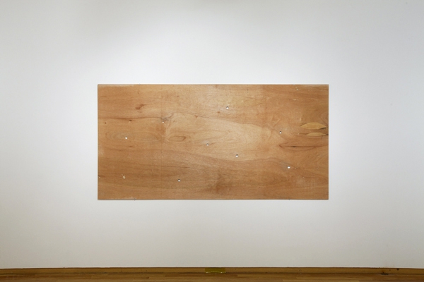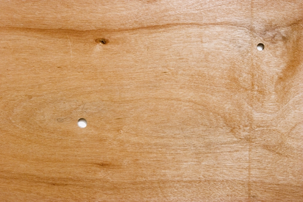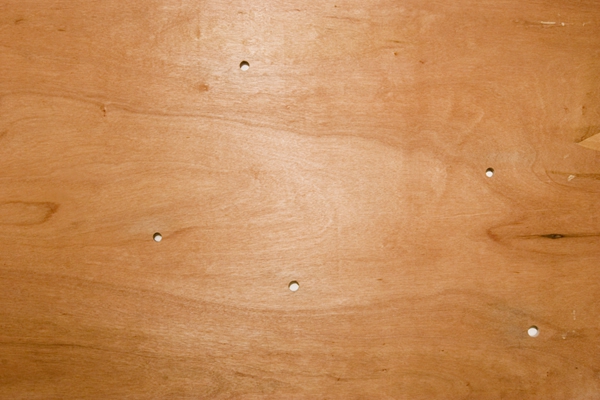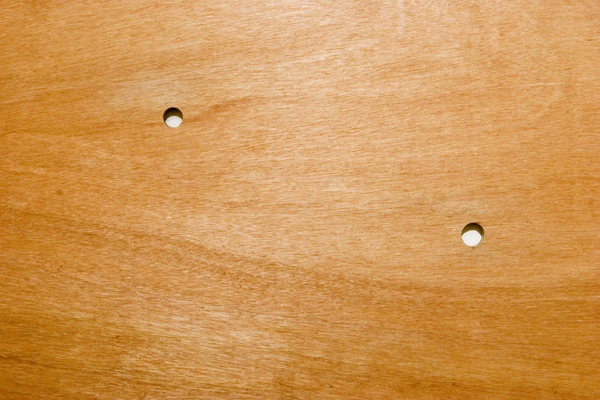 8 holes in diverse sizes on wood panel